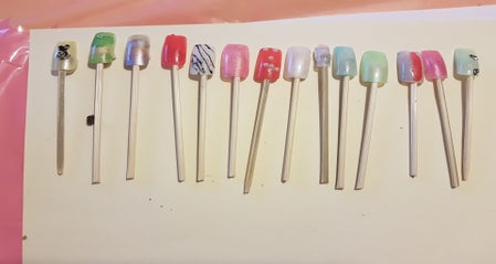 Dat moet natuurlijk eerst een beetje geoefend worden. Daarom trekken we de eigen handen over op karton, tekenen er de nagels op en doen we alvast inspiratie op voor de versiering ervan door het in te kleuren met viltstiften. Daarna krijgt iedereen 10 nageltips die ze helemaal zelf mogen versieren met diverse kleuren nagellak, stripers, stickers, glitters, steentjes en stempels. Wanneer iedereen goed geoefend heeft mogen ze dat naderhand ook op de eigen nagels doen of op die van elkaar. De nageltjes van de jarige wordt, als de jarige dat wilt, door de nagelstyliste gedaan.